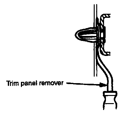 4. Insert a trim panel remover between the trim fasteners and the door trim panel to pry off. Disconnect the connector.