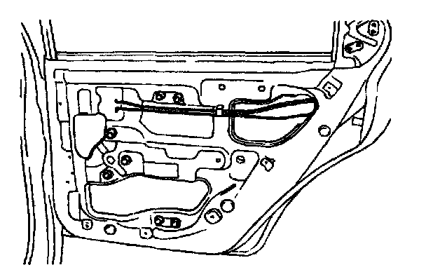 9. Remove the door regulator channel mounting bolts and then remove the door regulator assembly.
