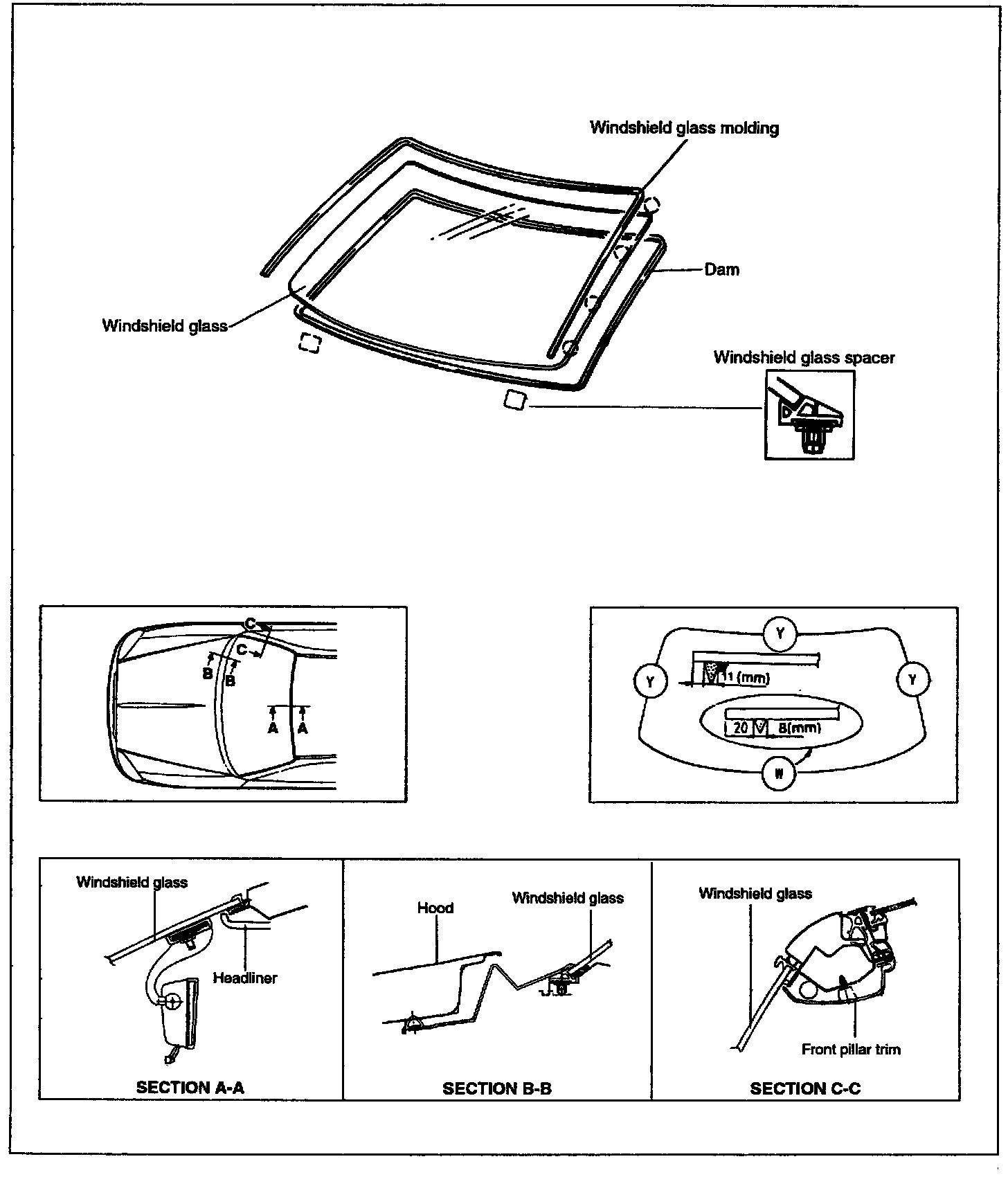 4. In order to protect the body (paint surface), apply cloth tape to all body flange around the windshield glass installed.