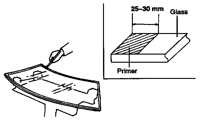 - Never touch the primed surface with your hand. If you do, the adhesive may not bond to the glass properly, causing a leak after the windshield is installed.