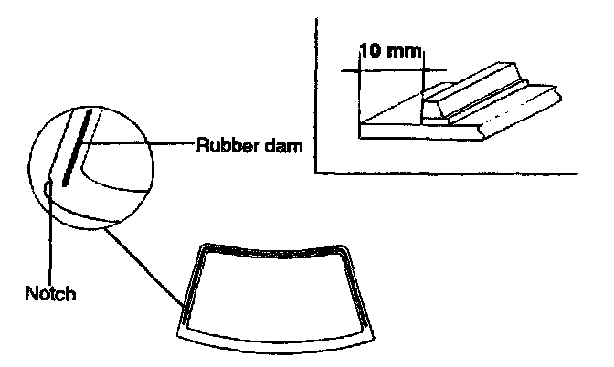 6. Glue the rubber dam to the inside surface of the windshield glass around the edge as shown, to contain the sealant during installation.