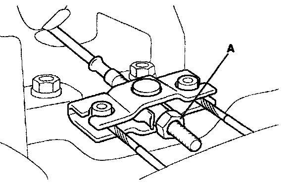 5. Tighten the adjusting nut (A) until the parking brakes drag slightly when the rear wheels are turned.