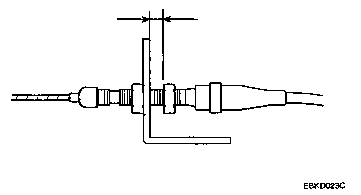 5. Turn the adjusting nut (A) until it is 3.75 ± 0.5 mm (0.15 ± 0.02 in.) away from the bracket (B).