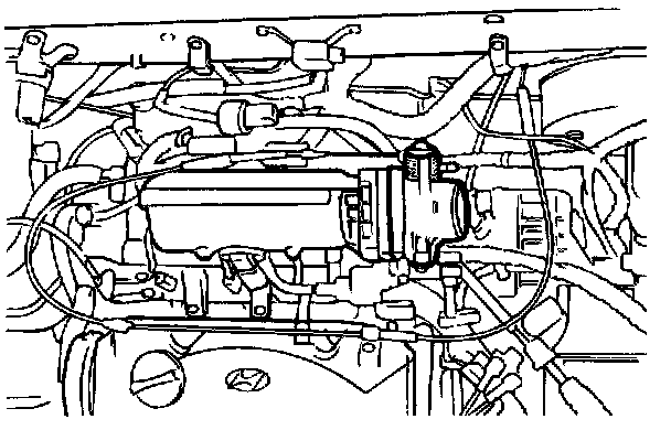 6. Install the P.C.V hose and brake booster vacuum hose.