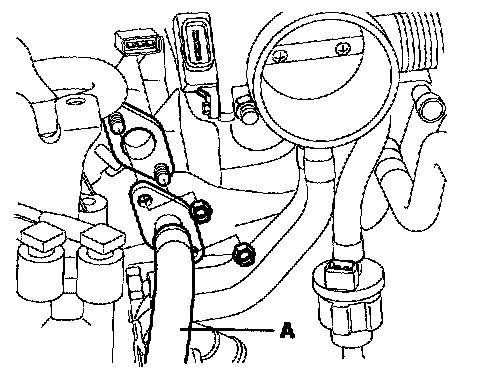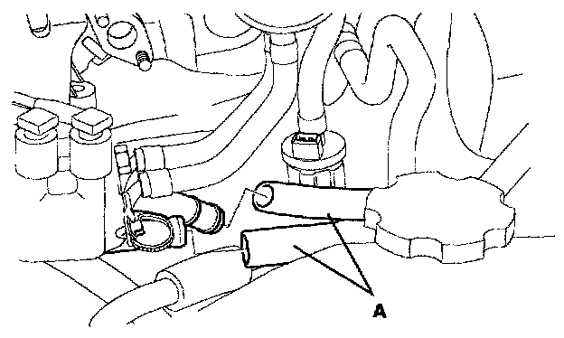 5. Remove the upper radiator hose (A) and lower radiator hose (B).