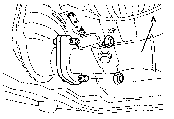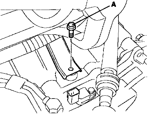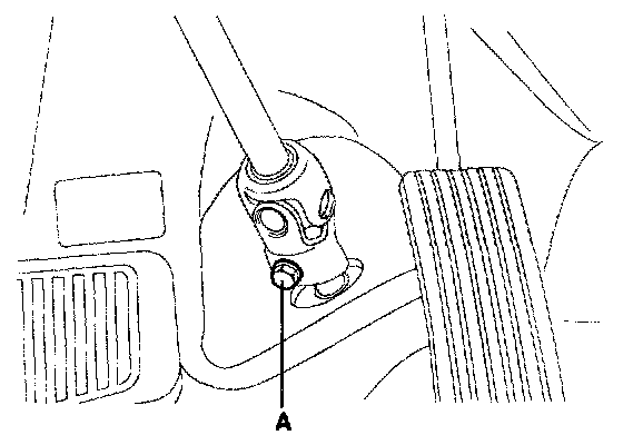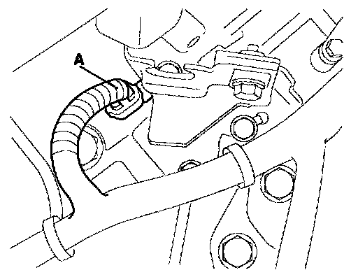 31. Remove the power steering return hose (A) and drain the power steering oil.