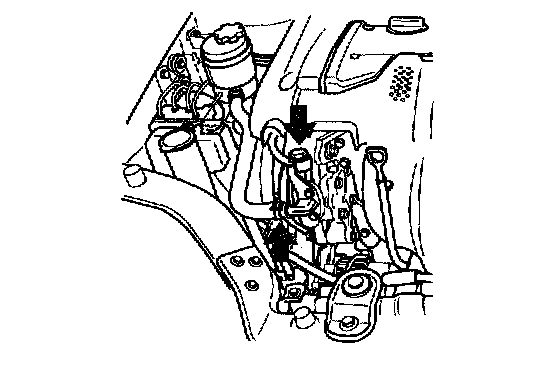 3. Raise the vehicle and remove the mounting clamp which is holding both the pressure tube and the return tube.