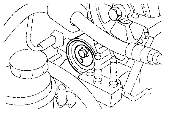 5. Install the idler pulley and tighten the bolt to the specified torque.