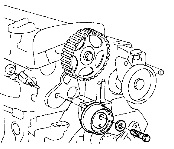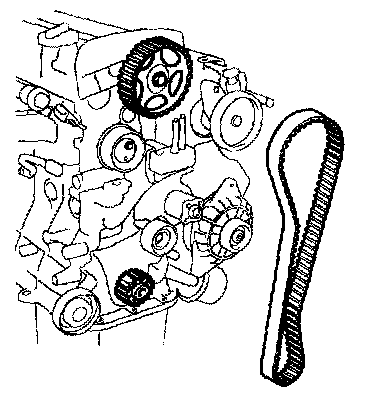 NOTE: If the timing belt is reused, make an arrow indicating the turning direction (or the front of the engine) to make sure that the belt is reinstalled in the same direction as before.