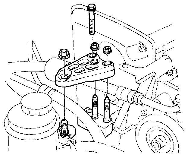 8. Temporarily fasten tensioner pulley by center bolt to add force at belt.