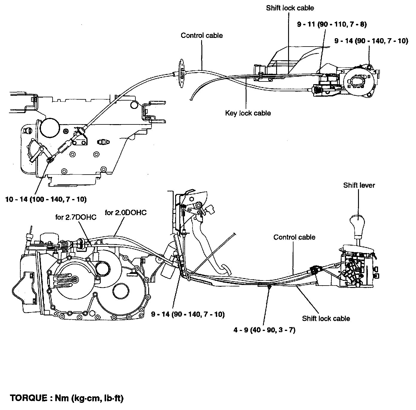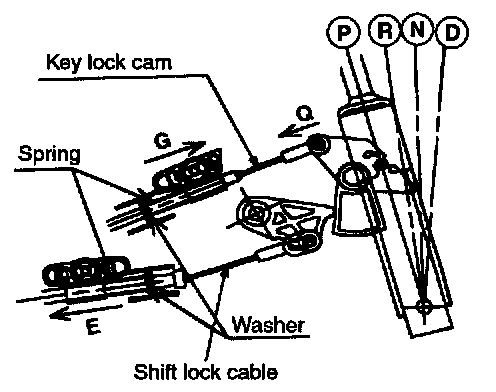 PROCEDURE FOR ADJUSTING SHIFT LOCK AND KEY LOCK CABLE