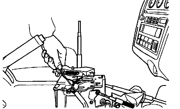 2. Install the shift lock and key lock cable in position. In this case, the shift lock cable must be fixed to the brake pedal and the key lock cable must be fixed to the key cylinder.