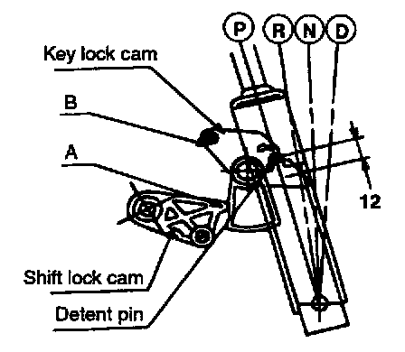 1) Check that the key lock cam is located at "B" by the detent pin.