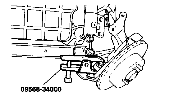 6. Using the Special Tool (09568 - 34000), disconnect the lower arm ball joint from the lower arm.