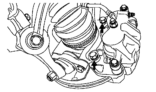 5. Remove the caliper mounting bolts from the knuckle.