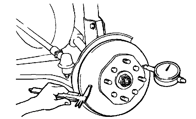2. When measuring the disc runout, fix a dial gauge approximately 5 mm from the outer edge of the disc, and rotate the disc 360°.