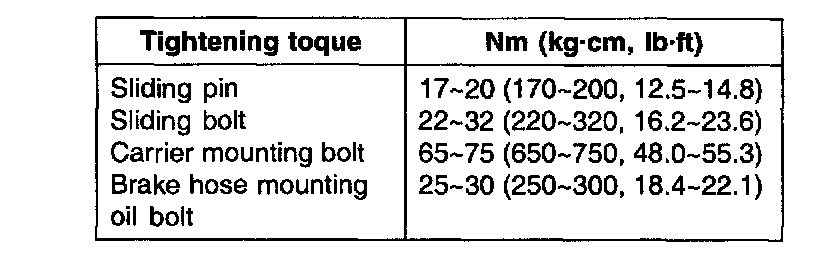 1. Be careful not to spill grease or oil on the pad and brake disc contact surface.