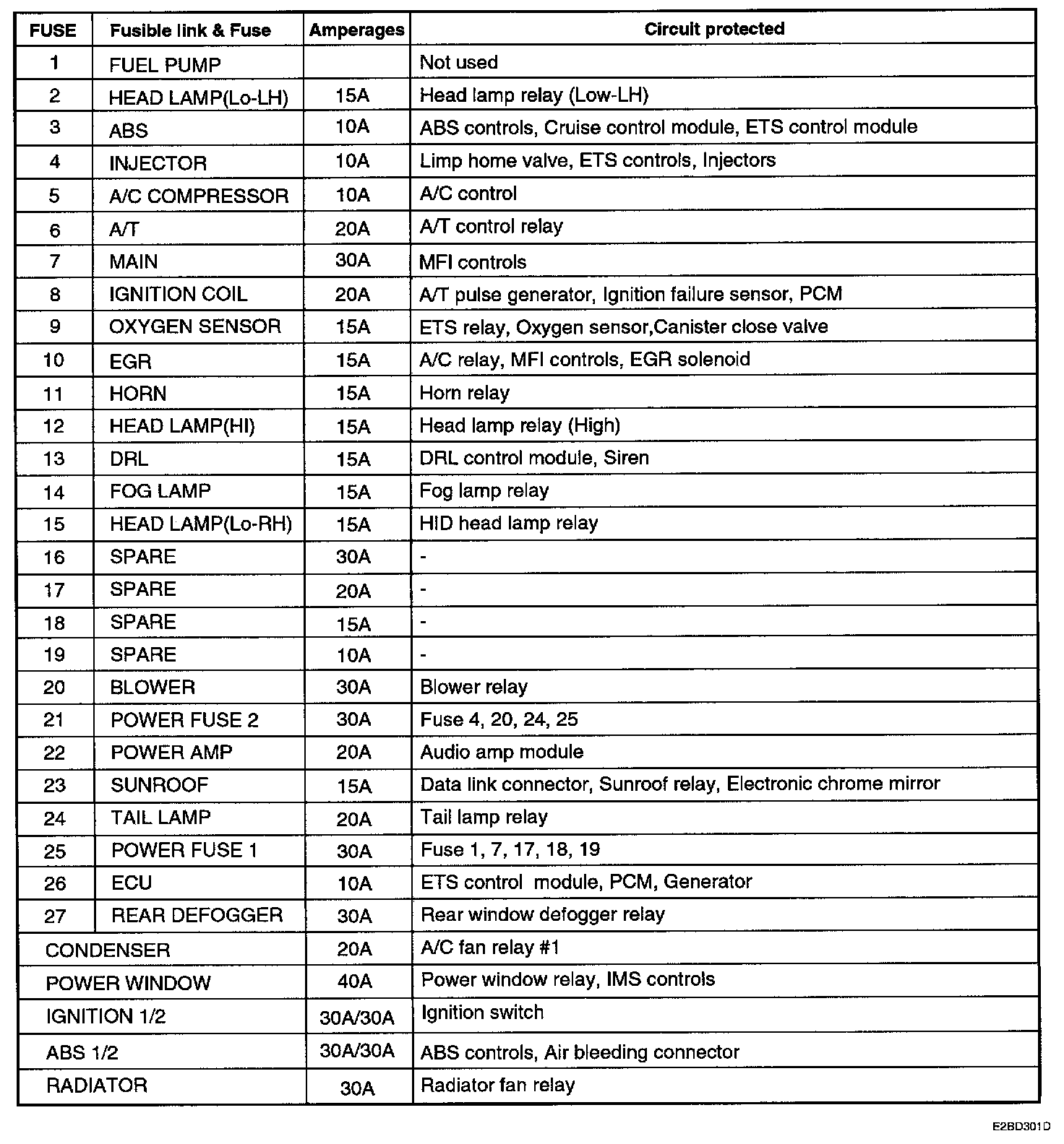 Engine Compartment Junction Block Circuit Details: