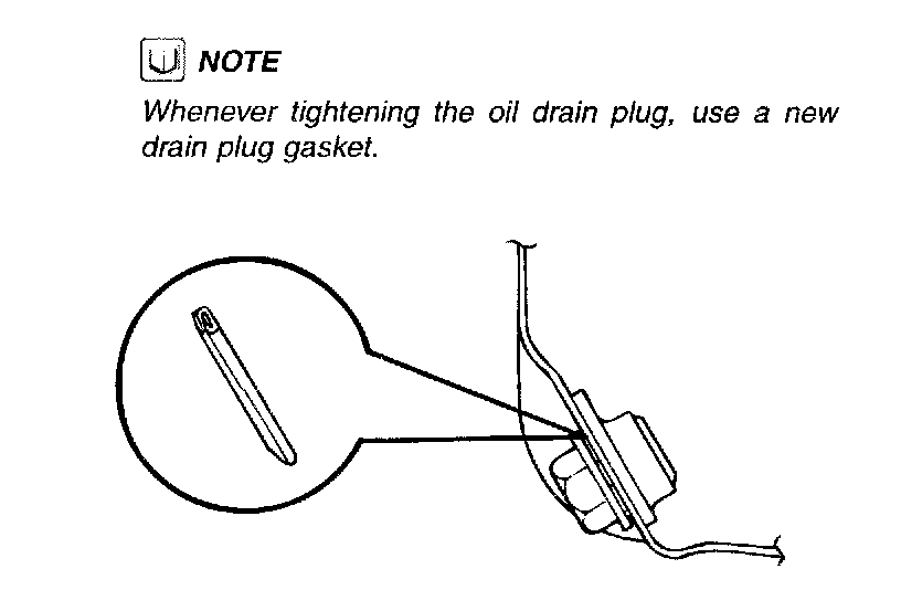 NOTE: Whenever tightening the oil drain plug, use a new drain plug gasket.