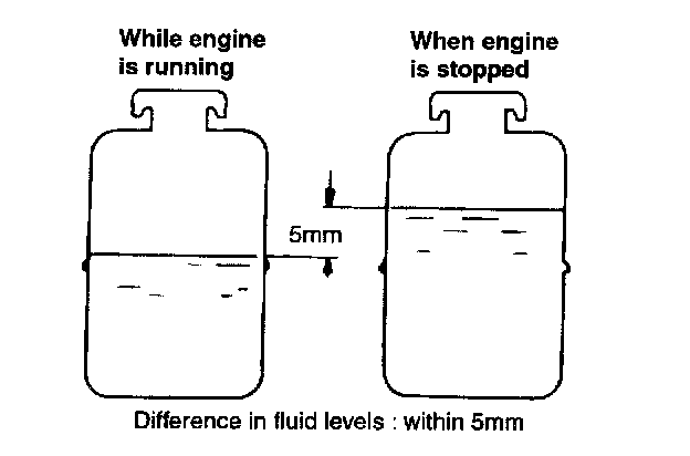 1. If the fluid level varies 5 mm (0.2 inch) or more, bleed the system again.
