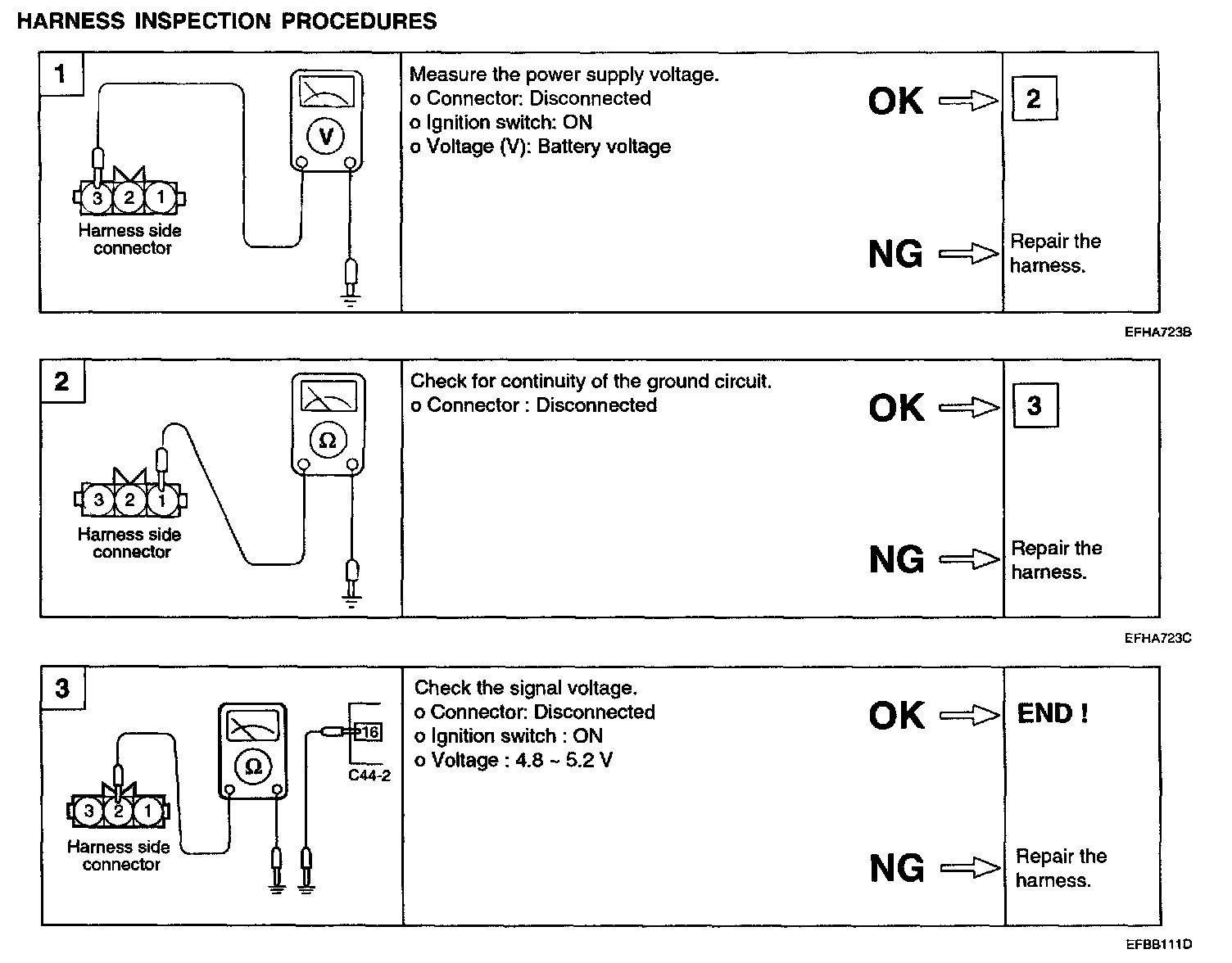 The CMP is a Hall-effect sensor that detects the camshaft position on the compression stroke of the No.1 cylinder, converts it into a pulse signal, and inputs it to the PCM. The PCM then computes the fuel injection sequence,etc. based on the input signal.