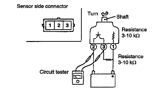 Vehicle Speed Sensor Check1 Remove the vehicle speed sensor and connect a 3-10 K Ohms resistance as shown in the illustration.