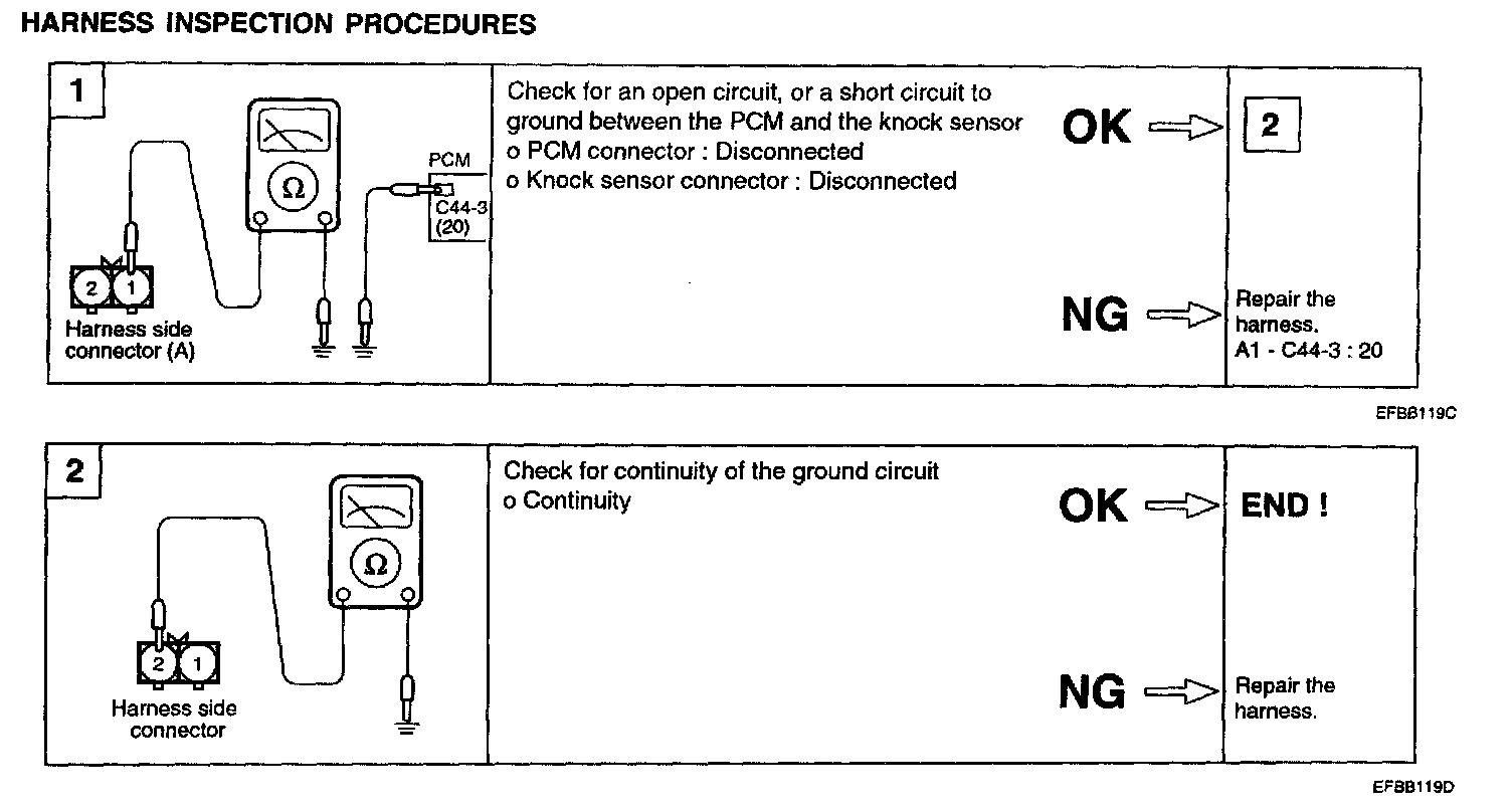 3. If the resistance is zero, replace the knock sensor.
