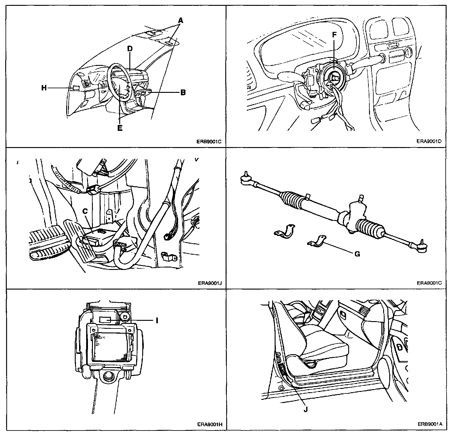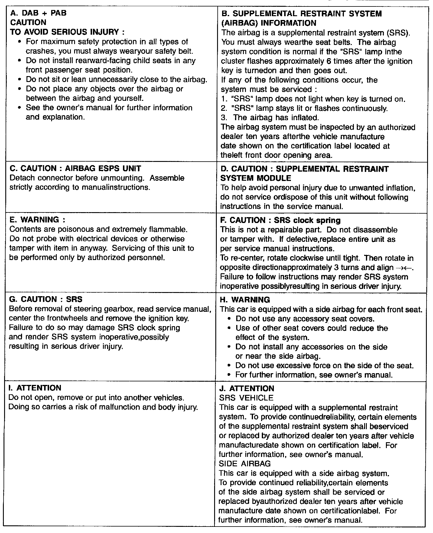 A number of caution labels relating to the SRS are found in the vehicle, as shown in the illustration. Follow label instructions when servicing the SRS.