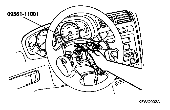 4. Mark the steering column shaft and steering wheel for fitting positions used for re-installation using the special tool. Remove the steering wheel.