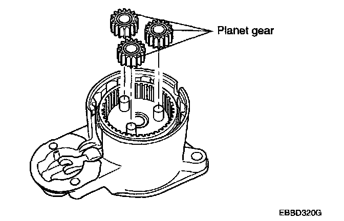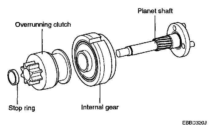 11. Disconnect the stop ring, overrunning clutch, internal gear and planet shaft.
