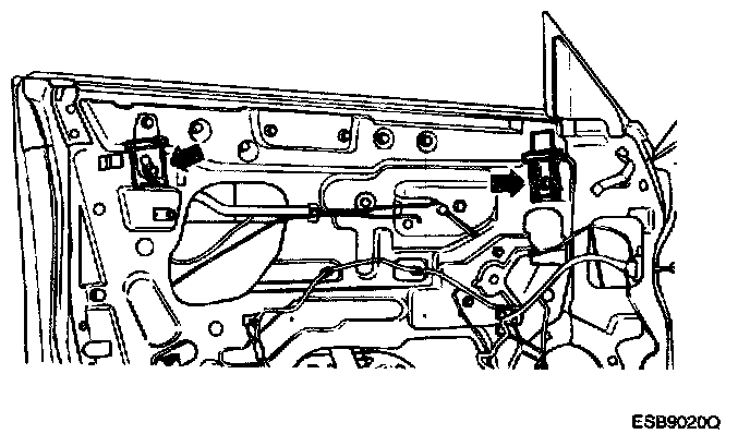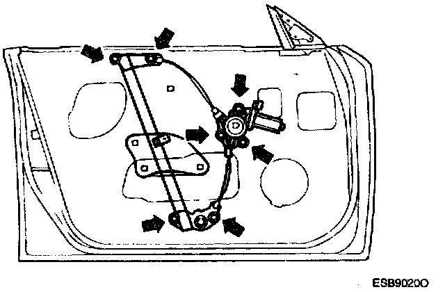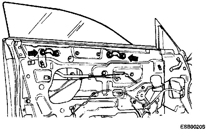 6. Tighten the stabilizer mounting nuts and push the door glass outward to the vehicle simultaneously.