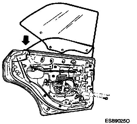 3. Temporarily install the door glass to the carrier plate.