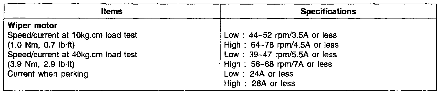 Wiper and Washer Systems: Specifications
