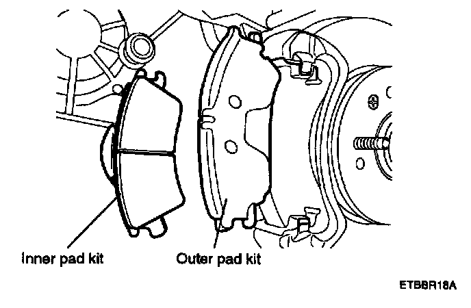 CAUTION: Do not depress the brake pedal while disassembling the pads.