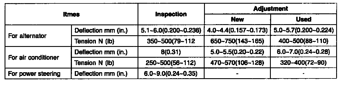 Alternator support bolt and nut..........20 - 25 Nm (200 - 250 kg-cm, 14 - 18 ft. lbs.)