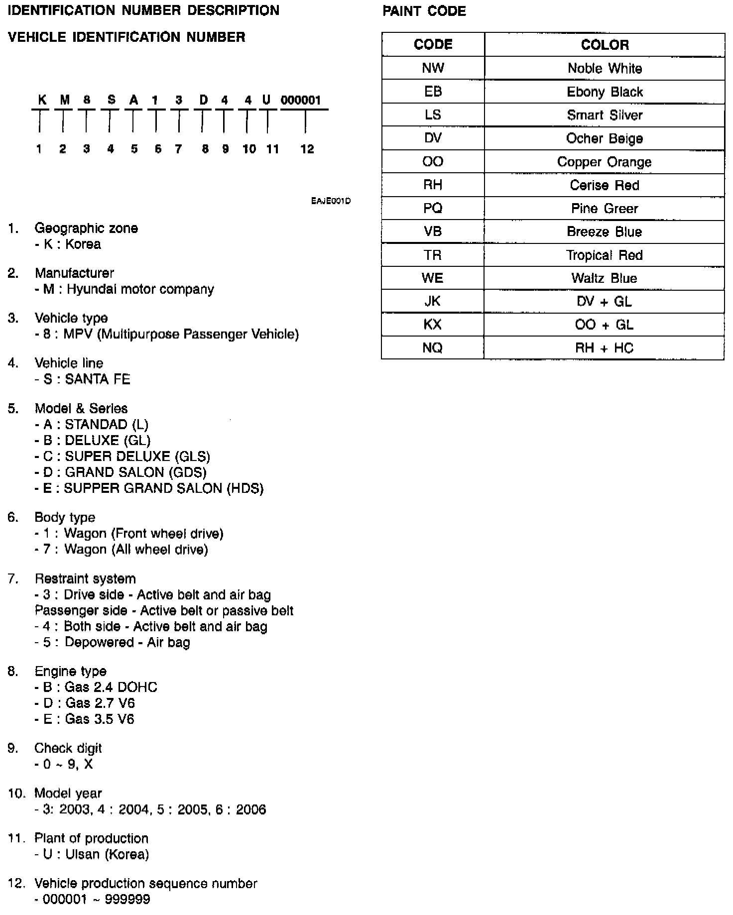 Vehicle Identification Number Description