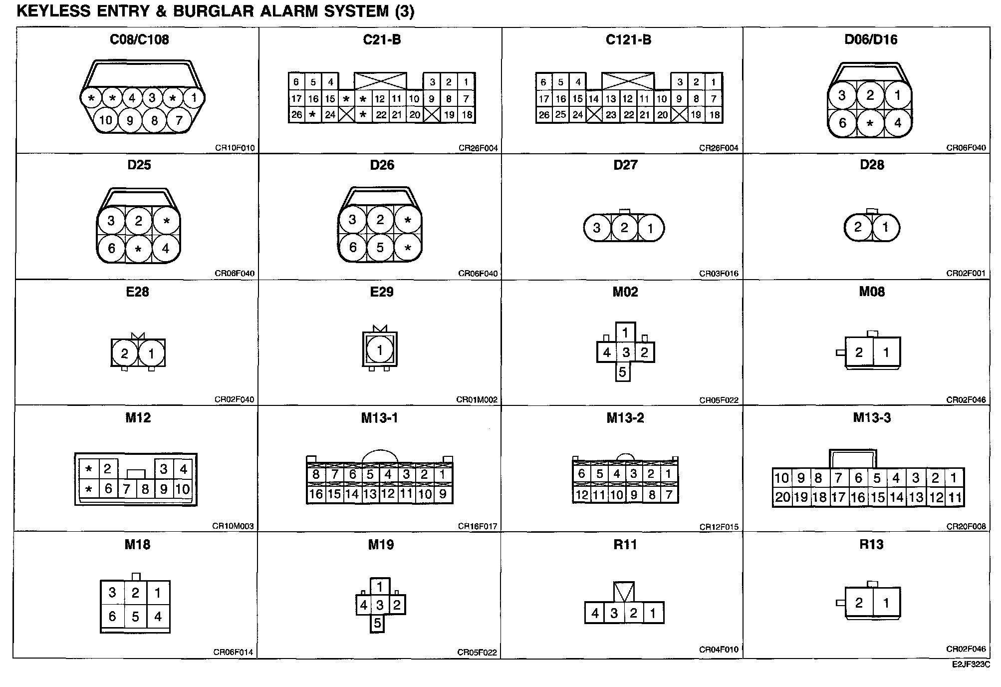 Keyless Entry & Burglar Alarm System (3) Connector Pin Outs: