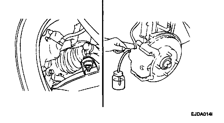 5. Pump the brake pedal several times, and then loosen the bleeder screw until fluid starts to run out without bubbles. Then close the bleeder screw.