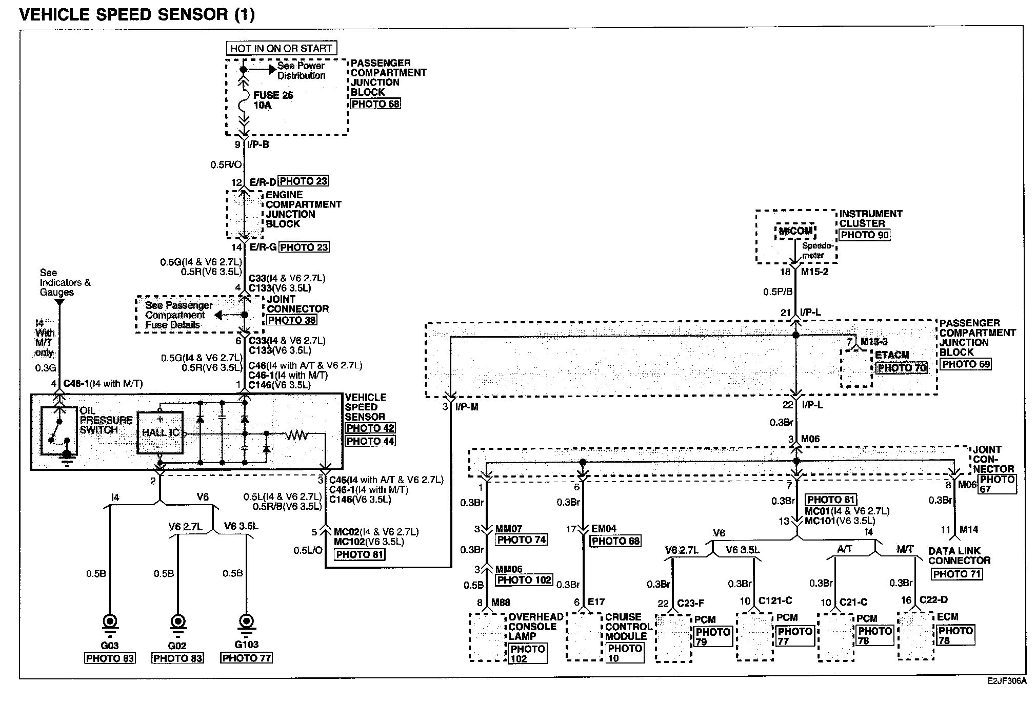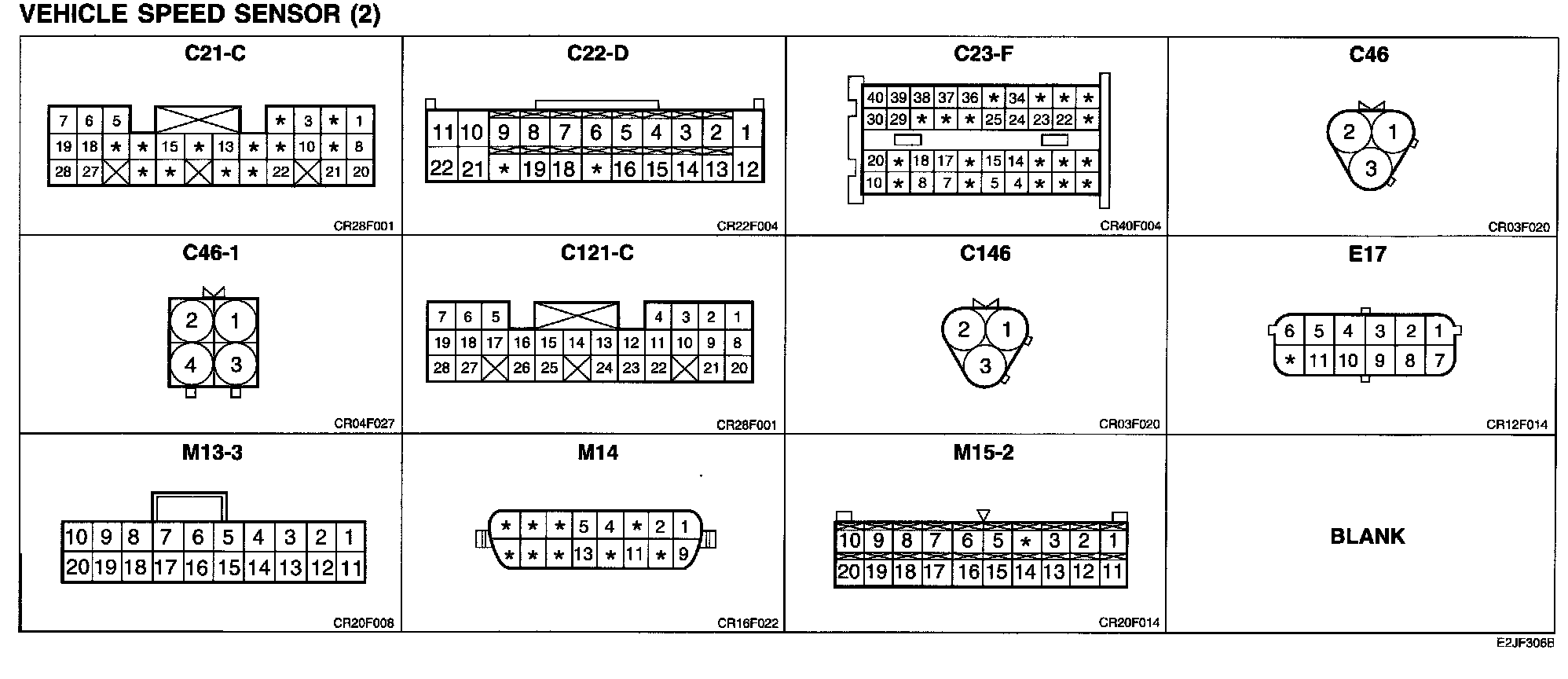 Vehicle Speed Sensor (2) Connector Pin Outs: