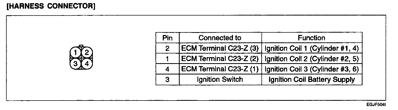 IGNITION COILThe ignition power transistor functions to control the ignition timing by controlling the ignition coil primary current through signals from the ECU and the ignition coil is of the type of ignition order of (#1 / #4), (#2 / #5), (#3 / #6) and is controlled by the power TR built in the ECU.
