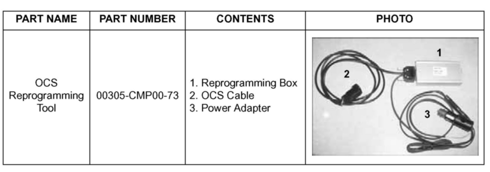 One initial OCS reprogramming tool has already been provided to your dealership free of charge to perform campaign 073, which is also being used for campaign 074. Replacement tools are available through your facing Parts Distribution Center (PDC).