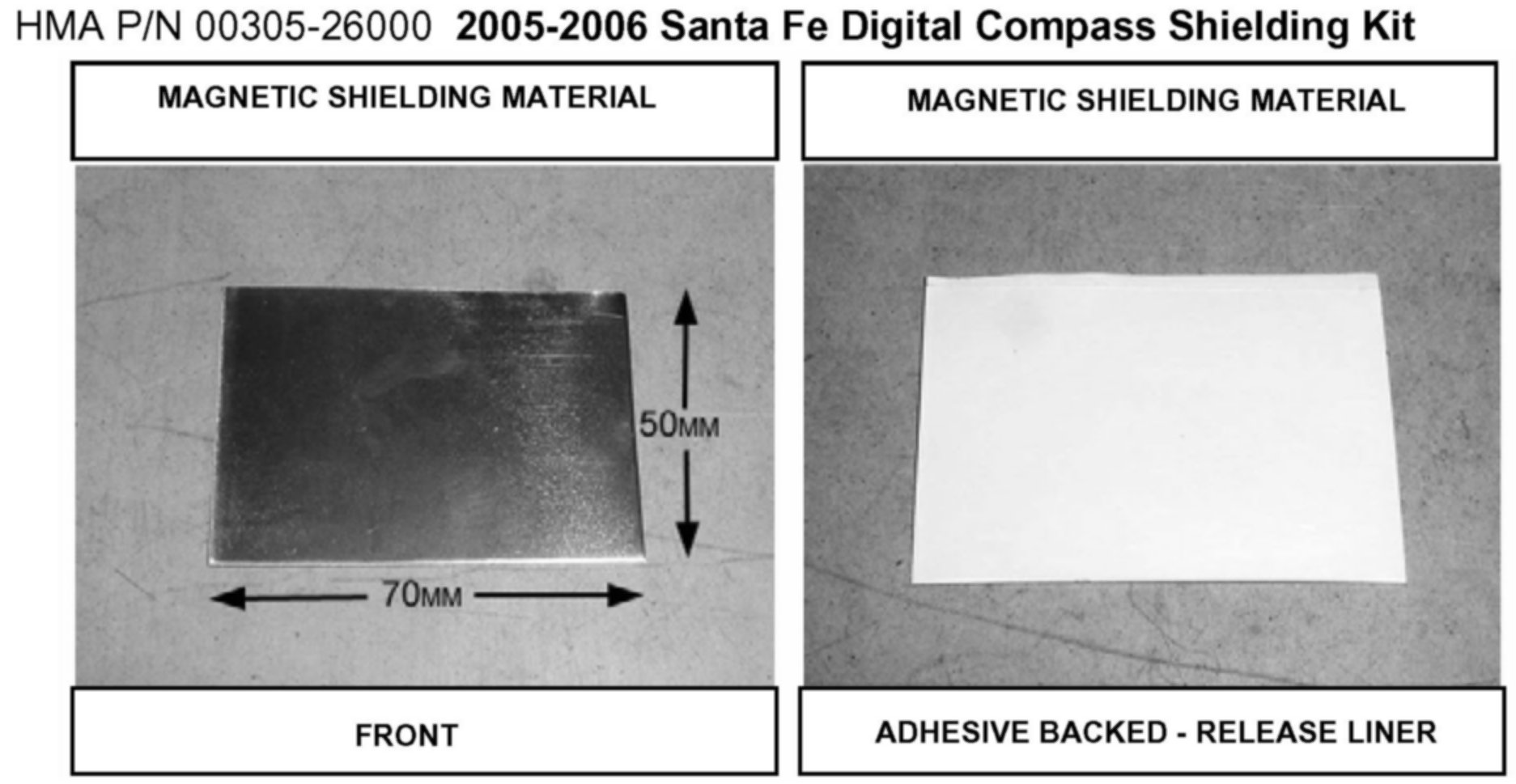 The digital compass in some 2005 & 2006 Santa Fe vehicles may not properly calibrate or display the correct heading even after following the calibration procedure provided in the owners manual and TSB 04-90-013. This TSB provides the installation instructions for applying a magnetic shielding panel (MU metal) to the digital compass to prevent magnetic interference from the roof panel.