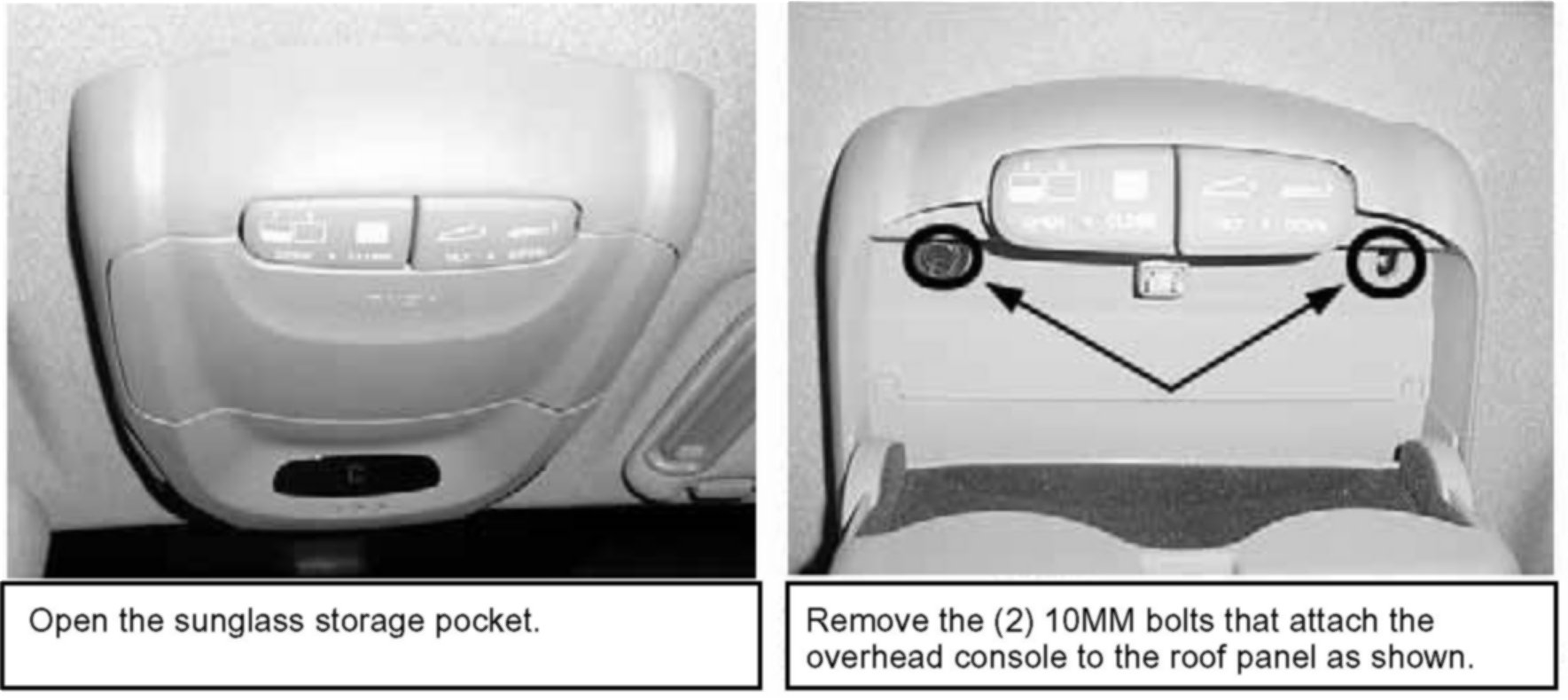 2. Gain access to the digital compass module by first removing the overhead console as shown.