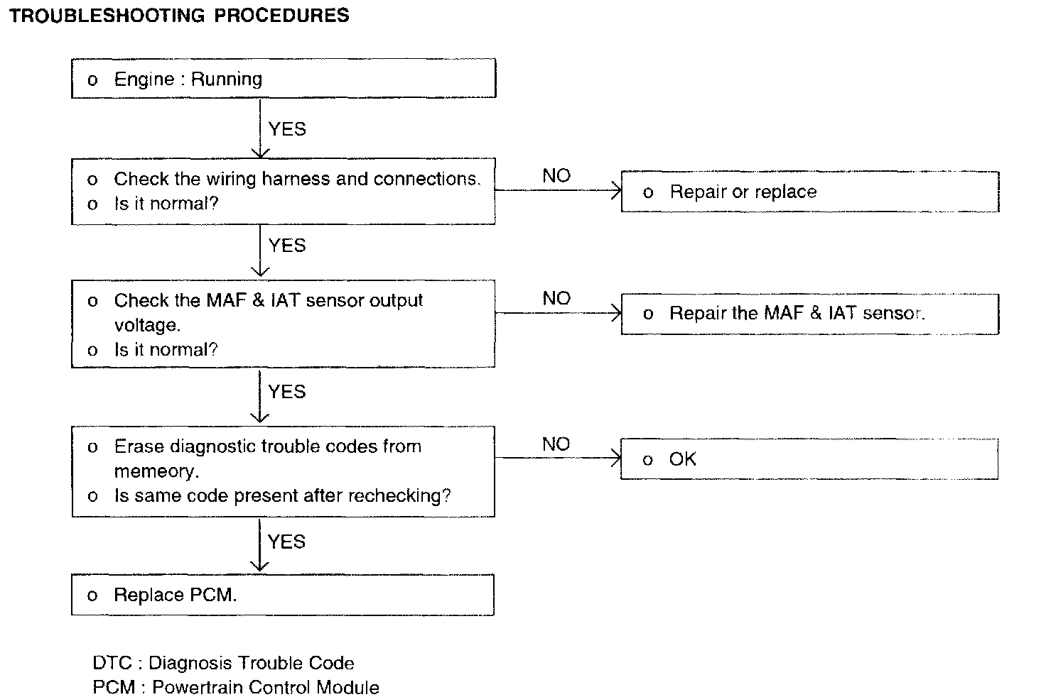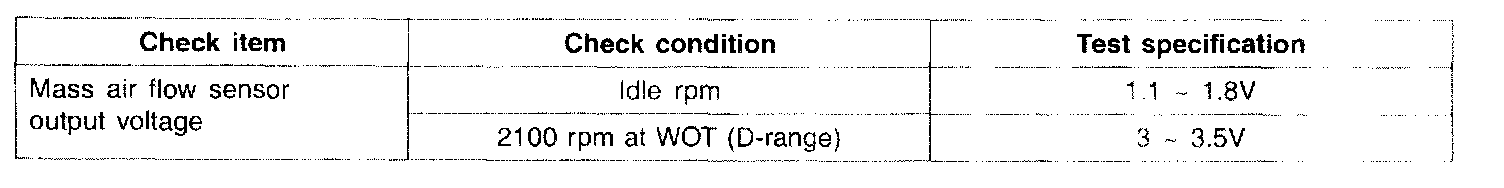 3. If the engine can idle even if the MAF sensor output voltage is out of specification, check for the following conditions;