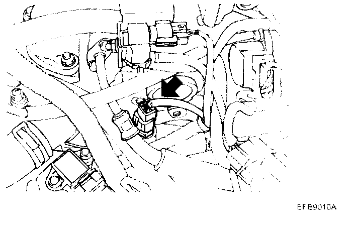 ENGINE COOLANT TEMPERATURE (ECT) SENSORThe engine coolant temperature sensor installed in the engine coolant passage of the cylinder head detects the engine coolant temperature and emits signals to the PCM. This part employs a thermistor which is sensitive to changes in temperature The electric resistance of the thermistor decreases in response to a temperature rise (NTC). The PCM determines engine coolant temperature by the sensor output voltage and provides optimum fuel enrichment when the engine is cold.