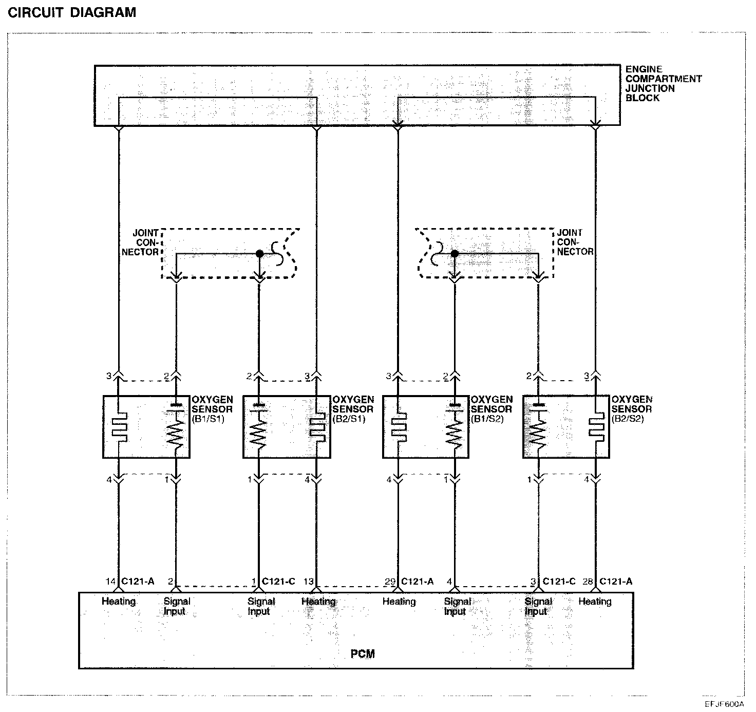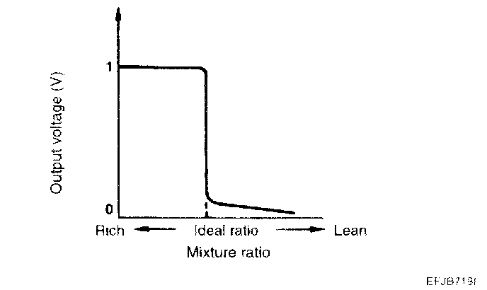 HEATED OXYGEN SENSOR (HO2S)The heated oxygen sensor senses the oxygen concentration in exhaust gas and converts it into a voltage which is sent to the PCM. For Zirconium type sensors, the oxygen sensor outputs about 1V when the air fuel. ratio is richer than the theoretical ratio, and outputs about 0V when the ratio is leaner (higher oxygen concentration in exhaust gas.). The PCM controls the fuel injection ratio based on this signal so that the air fuel ratio is maintained at the stoichiometric ratio. The oxygen sensor has a heating element which ensures sensor performance during all driving conditions.