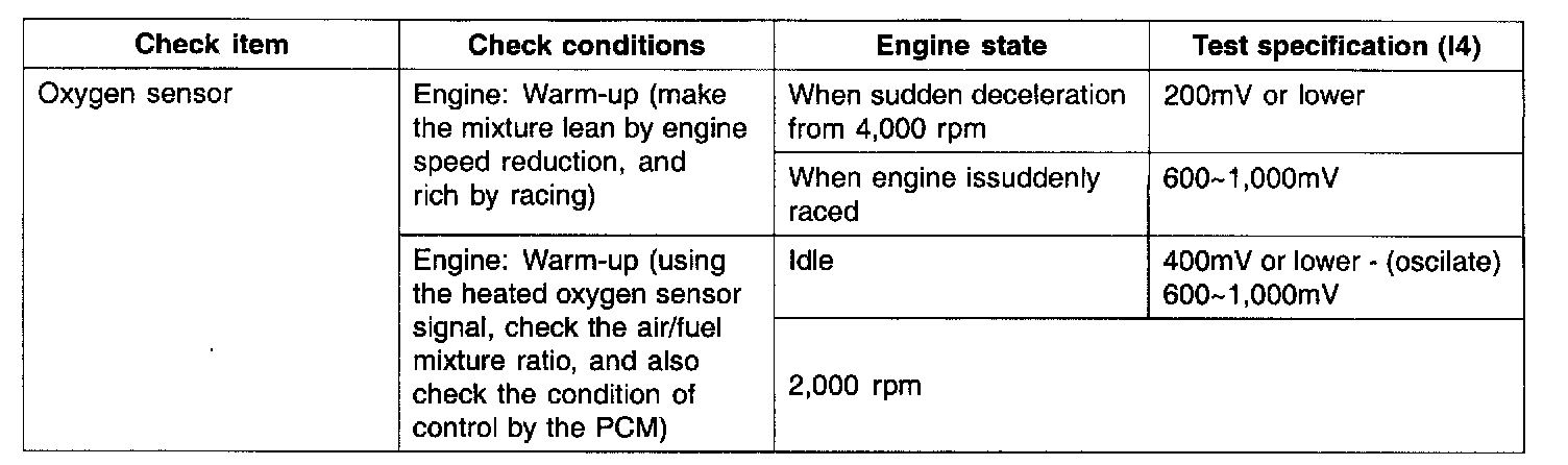 2. If the HO2S check results are normal, but the sensor output voltage is out of specification, check for the following items (related to air fuel ratio control system)