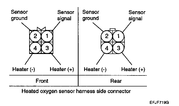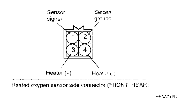 1. Disconnect the oxygen sensor connector, and measure the resistance between terminal 3 and terminal4.