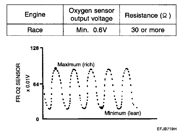5. While repeatedly racing the engine, measure the oxygen sensor output voltage.