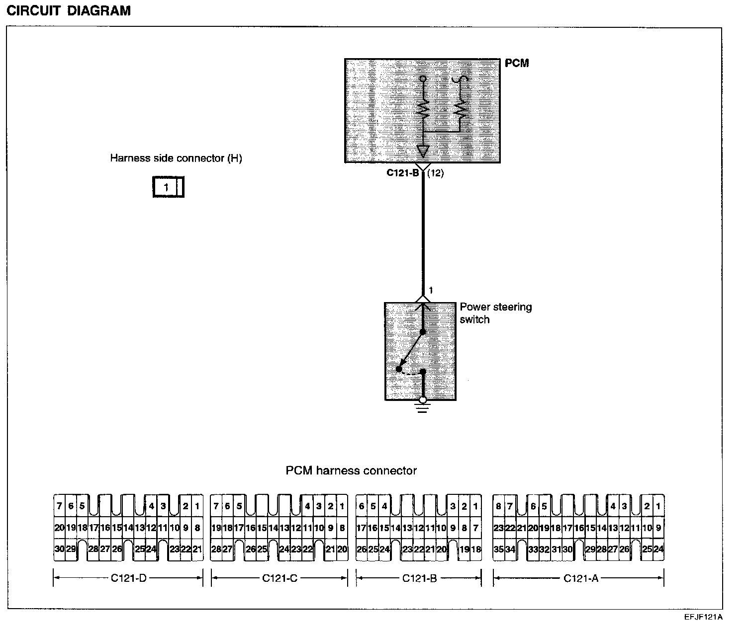 POWER STEERING PRESSURE (PSP) SWITCHThe power steering oil pressure switch senses the power steering load and inputs it to PCM, which then adjusts the idle speed control motor to maintain idle speed when the power steering pump puts a load on the engine.